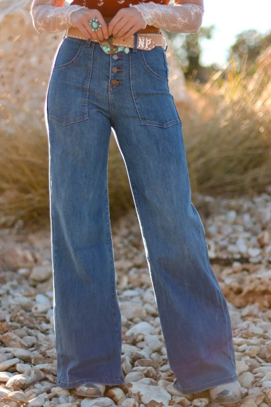 Evelina Button Fly Wide Leg Jeans