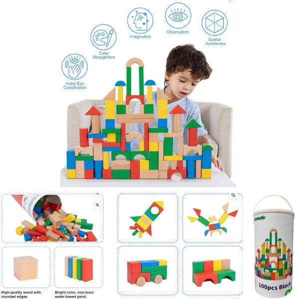 - 100pc Wooden Blocks Tub